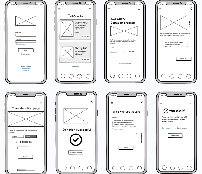 UX4Impact is a mobile-first platform that connects supporters with nonprofits through bite-sized research participation. I led the UX strategy and design as part of UX design program at Brainstation.